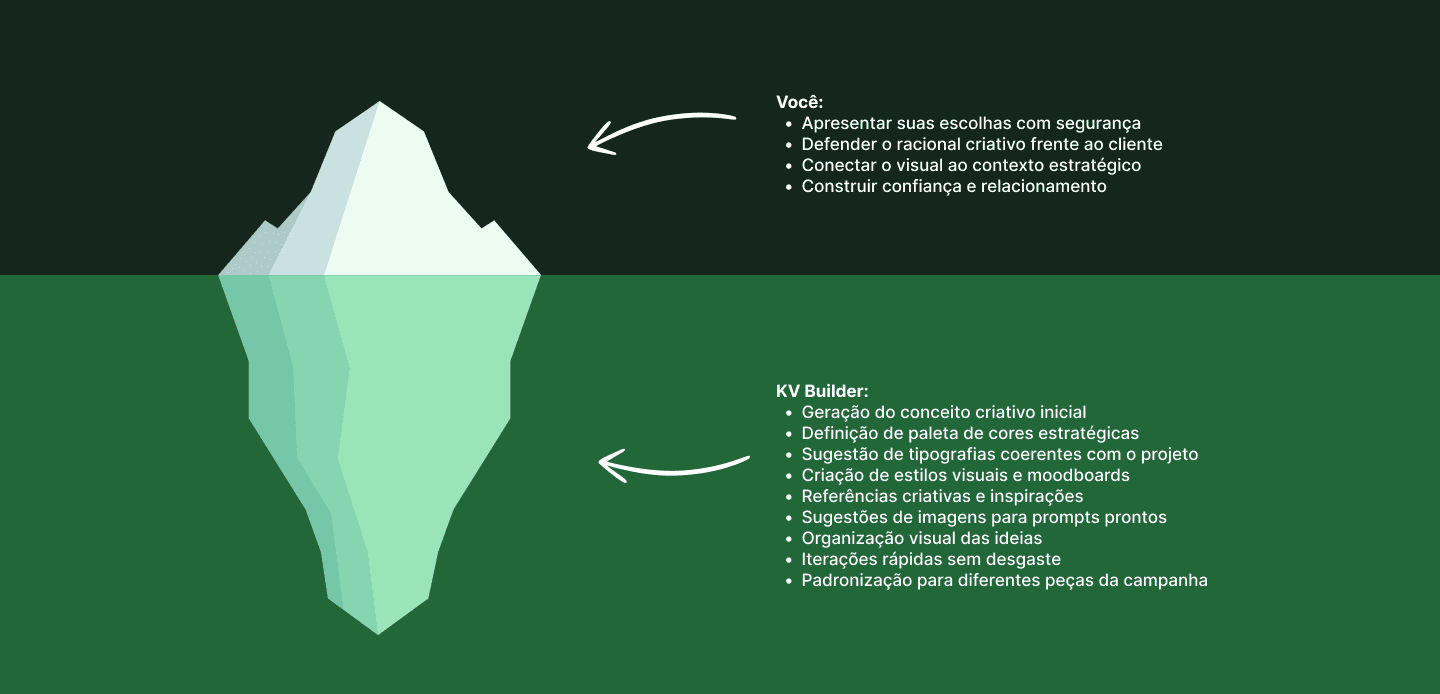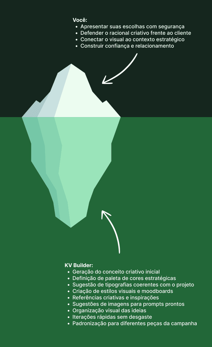 O Key Visual Builder cuida da parte pesada do processo criativo, acelerando seu trabalho. Mas o que realmente dá densidade humana e valor percebido para o cliente continua sendo insubstituível: você.